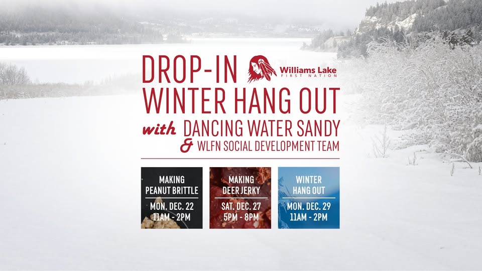 Don’t get snowed in, come out for these fun winter activities with your WLFN community at the WLFN Culture Building! Snacks provided. Everybody welcome (not just WLFN members). Support workers will be available if you need some help beating the winter blues. Hosted by Dancing Water Sandy and the WLFN Social Development team. Join us for three fun drop-in sessions:
